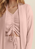 This matching 3-piece set features a drawstring tee, joggers and a maxi duster. The soft ribbed fabric is lightweight yet super cozy for the ultimate lounge feel. Wear the matching pieces as a set or rock each piece separately. From the couch to a coffee date, the possibilities are endless.