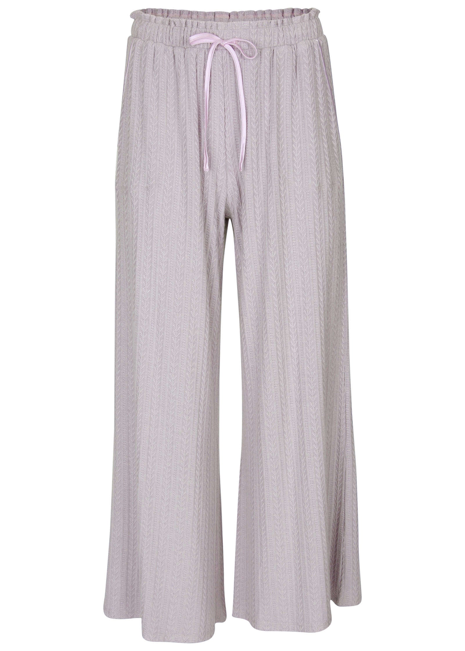 * Pants: High waist; Drawstring closure; Side pockets; Wide legs