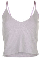 * Tank: Adjustable spaghetti straps; V-neckline; Cropped
