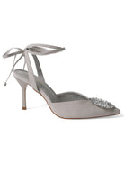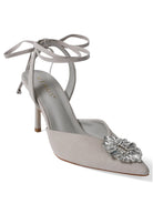 These faux-suede heels finish your look with glam and grace thanks to their lace-up ankle wraps and sparkly stone medallion embellishment at the front. A stiletto heel perfectly complements this pair's sleek V-cut, point-toe shape.