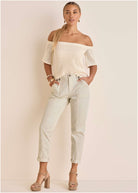 Rolled Hem Chino Pant - Cream