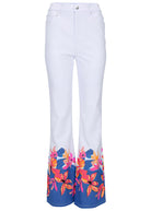 Bold blooms meet retro-chic vibes in these flower-printed modern flare pants. Designed with a flattering high rise, a statement flare leg, and functional pockets, they’re as practical as they are eye-catching. Whether you pair them with a bright tank to play up the print or keep it neutral to let the florals shine, these flares are ready to turn heads.