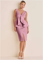 This Peplum V-Neck Dress is your go-to for any spring or summer event. The V-neckline and low back bring just the right amount of drama, while the peplum waist creates a figure-flattering silhouette. The front slit adds a touch of sass, letting you move with ease—whether you're twirling on the dance floor or strutting into brunch. Just add heels and your favorite accessories for a look that turns heads.