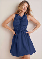 Ruched Sleeveless Mini - Dark Blue