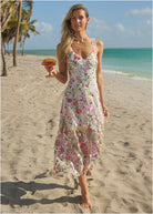 Effortlessly elegant and ready to shine at your next event! This sleeveless maxi dress features sheer ruffle sleeves, a flattering V-neckline, and embroidered floral details that add a romantic touch. The strappy back and invisible side zipper offer a seamless, sleek look. Perfect for brunch dates or special events—pair with your favorite heels for an unforgettable look. * Sizes: XS (2), S (4-6), M (8-10), L (12-14), XL (16) * Plus sizes: 1X (18-20), 2X (22-24), 3X (26-28) * Sleeveless: Stay cool and chic. * Sheer ruffle sleeves: Soft, feminine detailing for a romantic vibe. * Embroidered floral details: Adds texture and sophistication to the design. * Invisible side zipper: Seamless finish for a sleek fit. * Poly. Imported