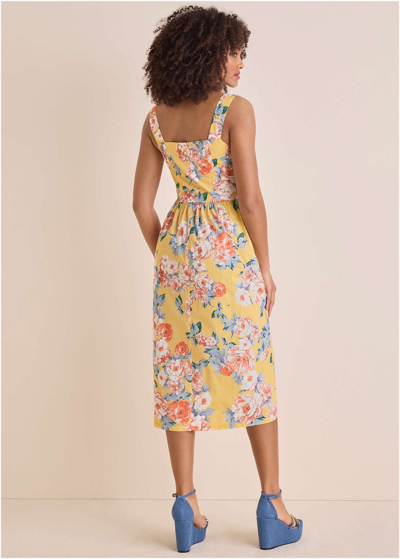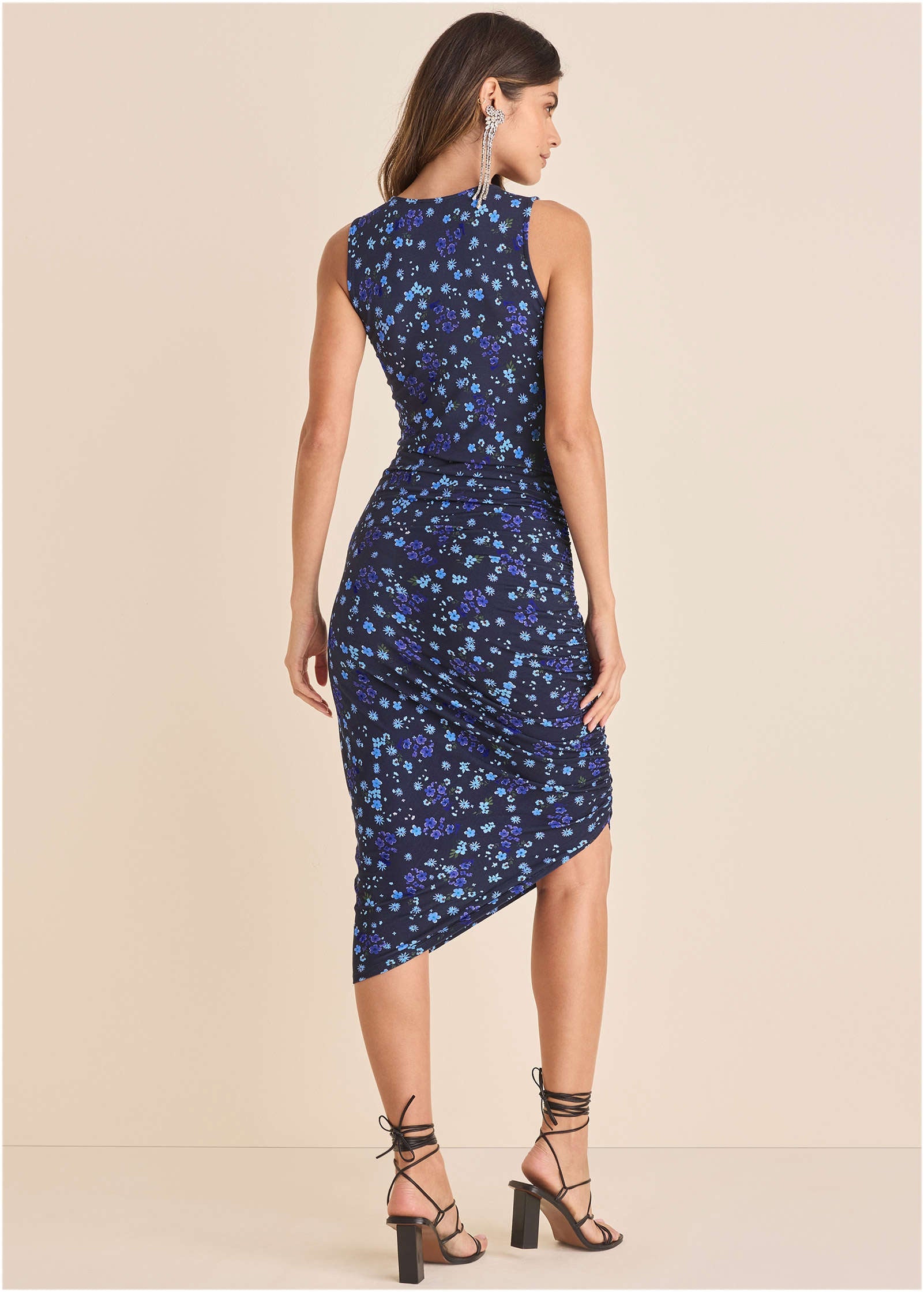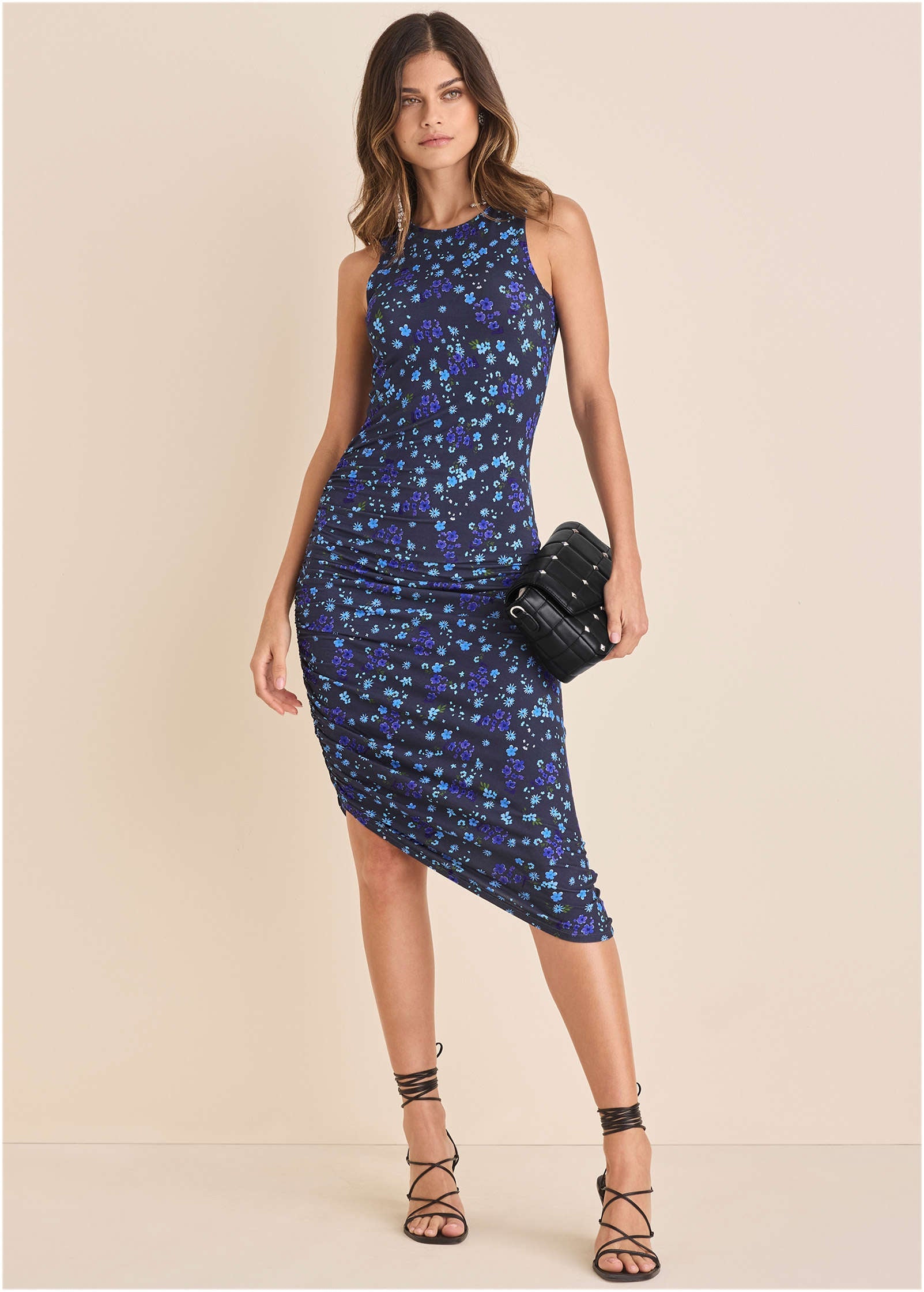 Side Ruched Midi Dress - Lovely Ditsy Blue