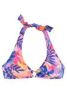 Low or high tide, this printed halter bikini top is on your side! Designed with supportive halter straps that tie in the back, this top is easily adjustable to best fit you. The timeless silhouette is universally flattering and features a bold print and sleek ring detail at the center of the bust for a sophisticated touch.