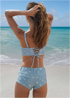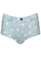 Shorts you can swim in? Say less. Designed to look like your favorite cutoffs but made for the water, these mid-rise swim bottoms feature cheeky coverage and a low-cut leg for a flattering, flirty fit. The button detail adds a playful nod to true denim styling, making these shorts a must-have for standing out at the beach or by the pool. Pair with the Denim Underwire Swim Top for a total Americana vibe! * Mid-rise: Sits comfortably on the hips for a flattering fit. * Cheeky coverage: Just the right amount of reveal for a confident look. * Low-cut leg: Creates a vintage-inspired silhouette. * Button detail: A fun, denim-style accent that ties the look together. * Domestic or import of nylon/spandex tricot