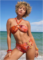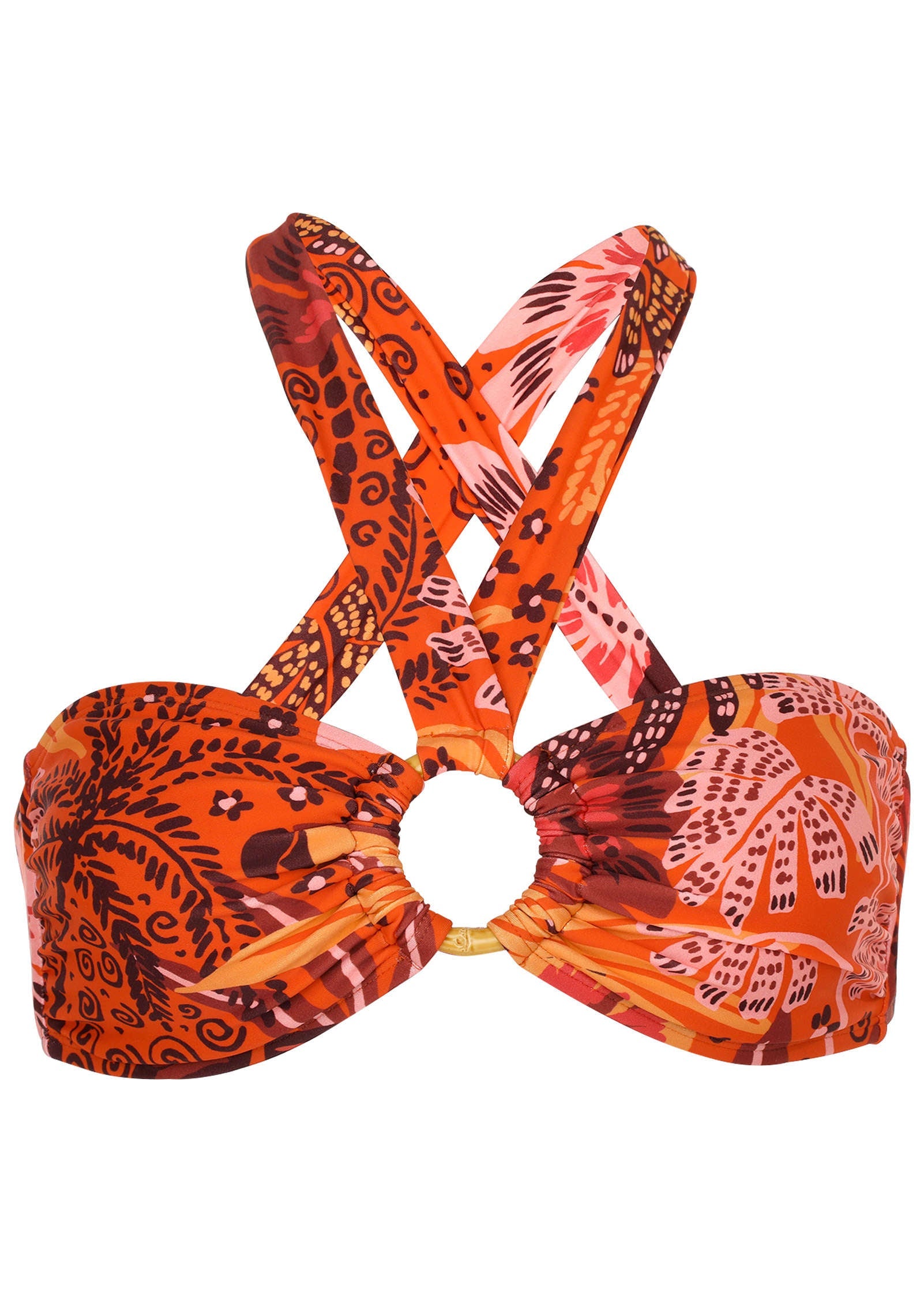 Turn up the tropical vibes with the Bamboo Ring Bandeau Top—a head-turning swim staple with a criss-cross halter neckline and an eye-catching bamboo ring embellishment. The criss-cross back adds extra flair, making this the perfect mix of stylish and secure. Whether you're lounging under the sun or strolling along the shore, this top is made for vacay mode.