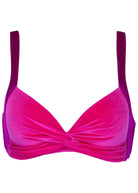 Give your beach-day bikini a twist in this shoulder-strap top that flatters. Gathers that span from the center twist work with modesty cups to shape and smooth out the silhouette. The back slider strap adjusts for your ideal fit, assuring comfort for all-day sunbathing.