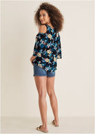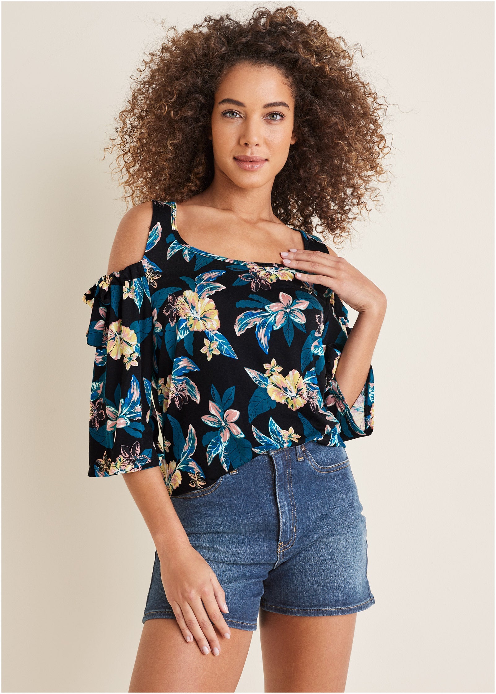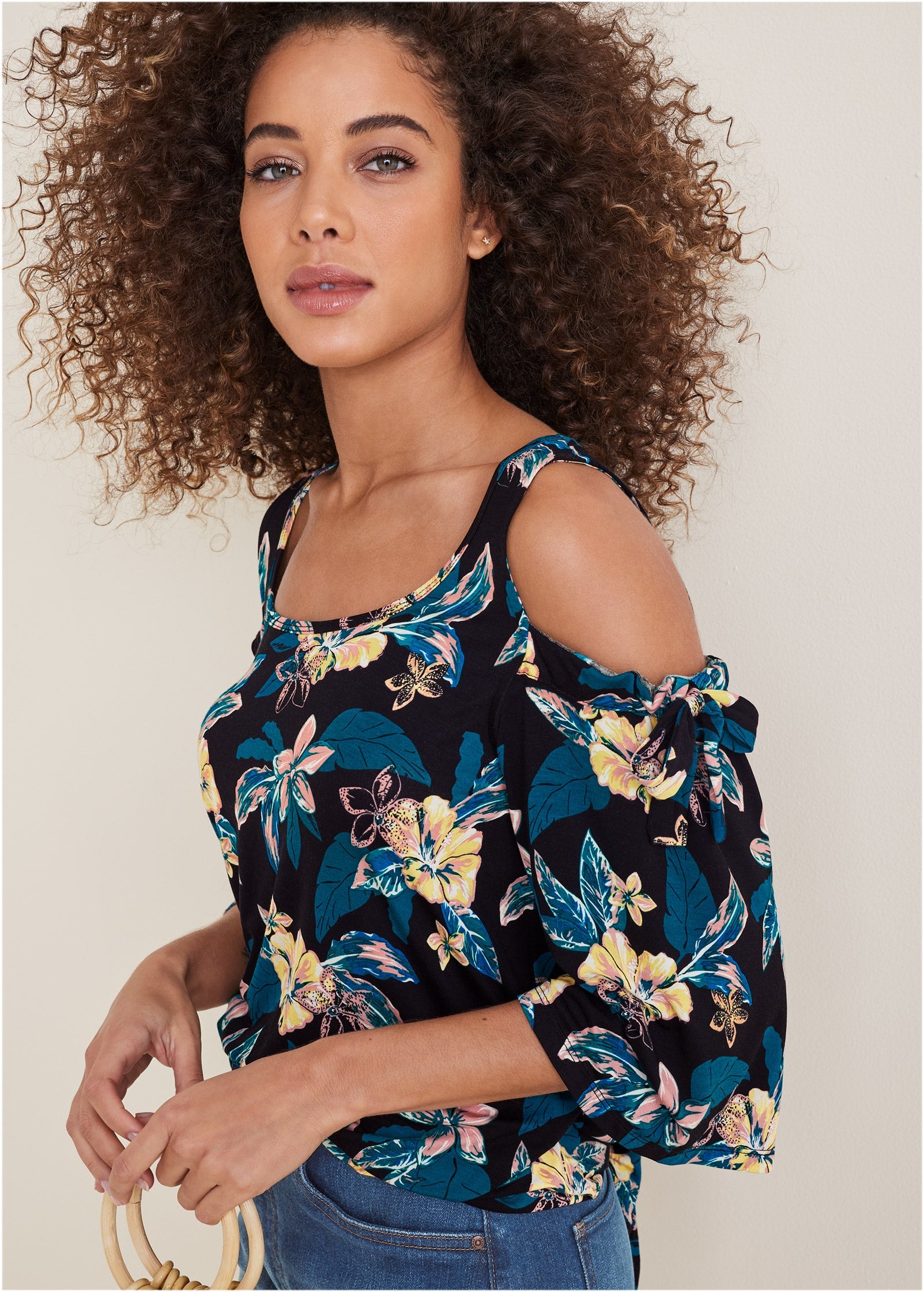 Bare shoulders with bow details assure instantly chic appeal! This 3/4 sleeve relaxed-fit top boasts an allover floral print, giving an extra-feminine touch to the effortless silhouette. Paired with jeans or shorts, this top will take you through the seasons.