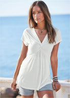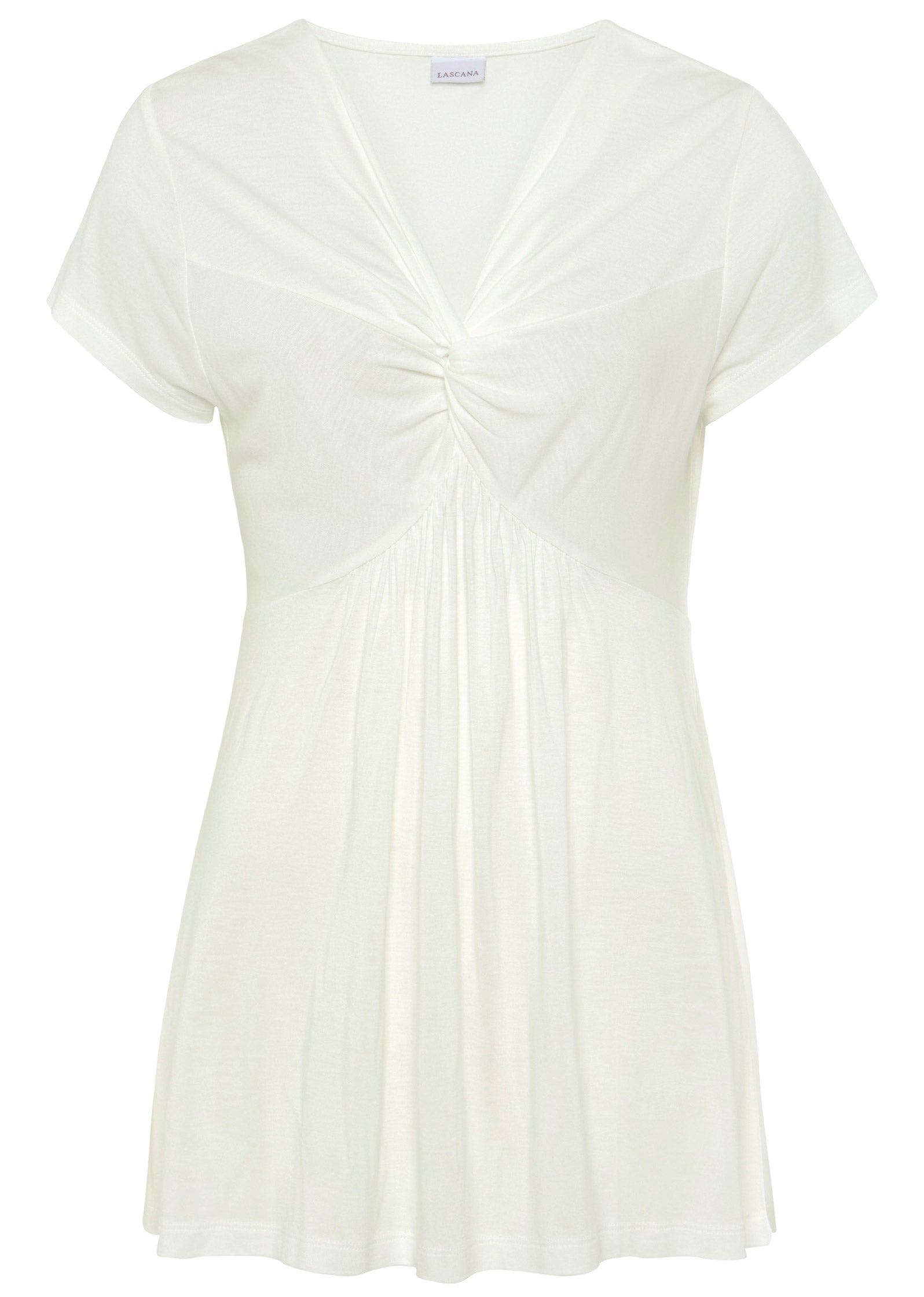 Babydoll tops are best served with a twist. A front twist to be exact. Designed with super-soft fabric and a flattering emphasis on the waist, this top combines comfort with style. The fabric effortlessly drapes for a look that complements all body types.​ * Sizes: XS (2), S (4-6), M (8-10), L (12-14), XL (16) * By Lascana for VENUS * Viscose. Imported