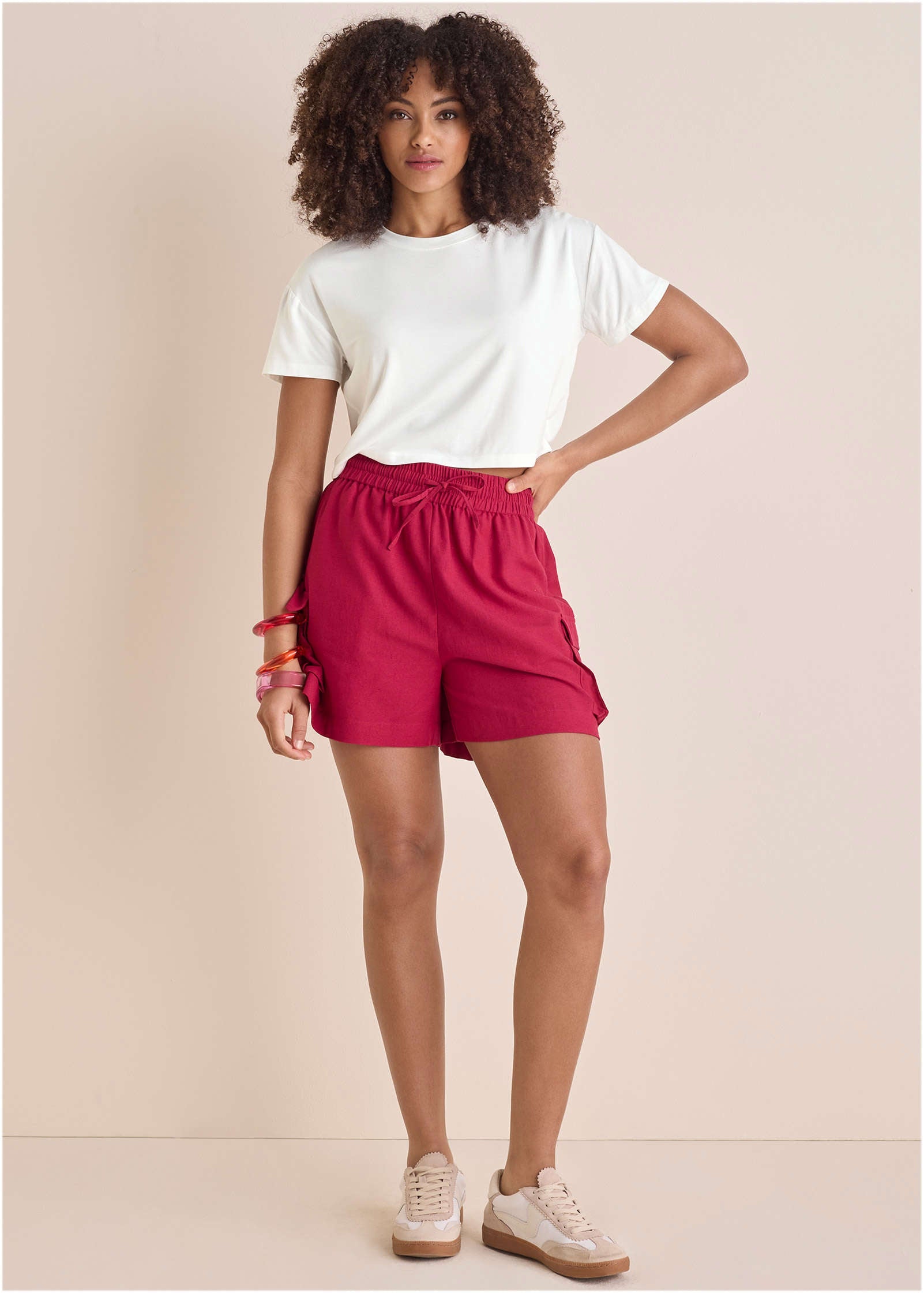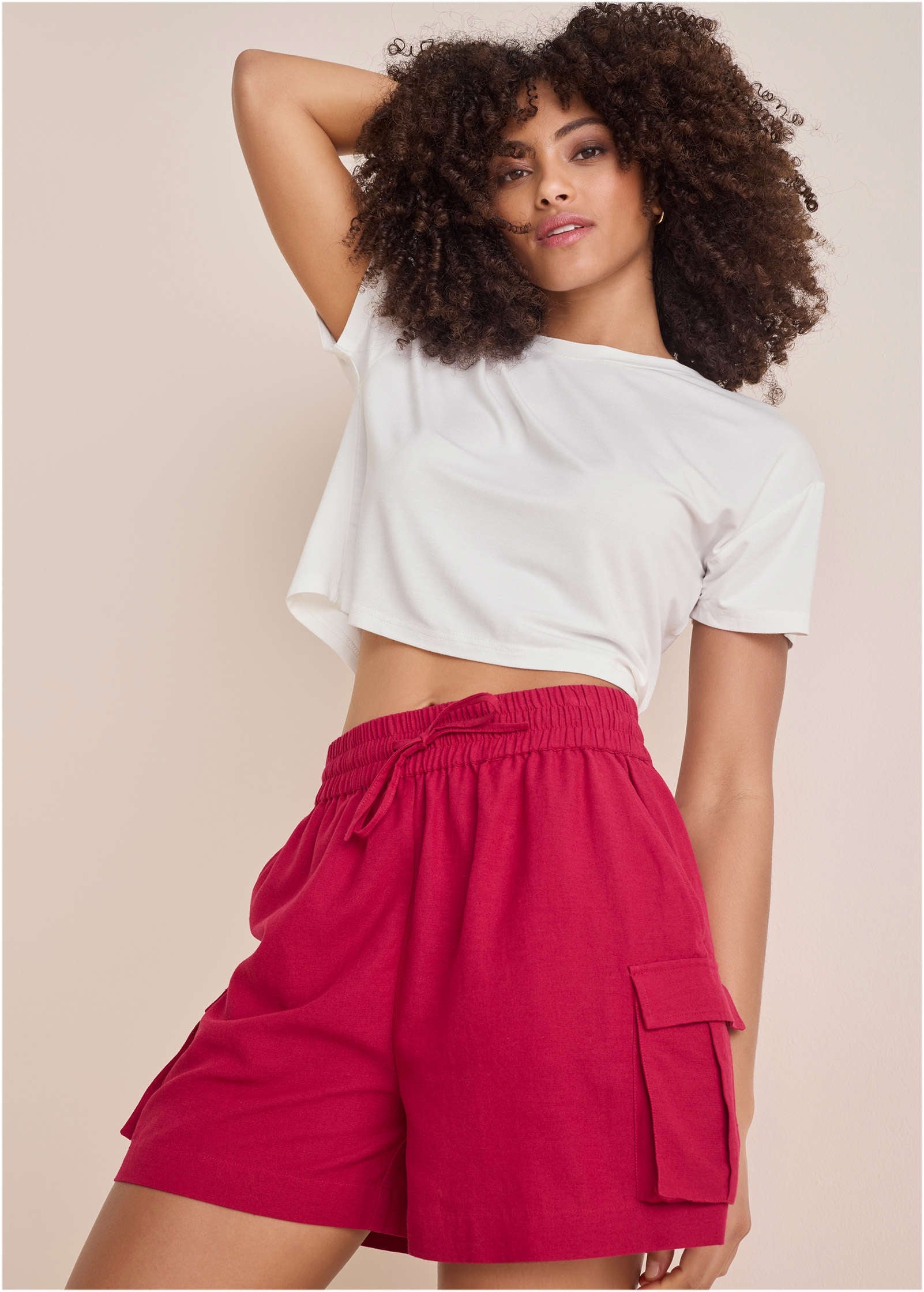 Effortless, breezy, and made for all your warm-weather adventures! These Cargo Shorts are designed with a comfortable elastic waist and adjustable drawstring, giving you the perfect fit every time. Functional pockets and classic cargo detailing add both style and convenience, so you're always ready for whatever the day brings. Pair them with your favorite basic tee and sandals for an easy, lightweight hot-weather look that you'll want to wear on repeat!