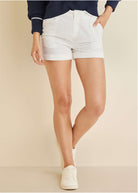 Eyelet Cuffed Button Shorts - Cloud Dancer
