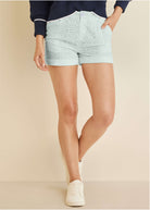 Eyelet Cuffed Button Shorts - Skywriting