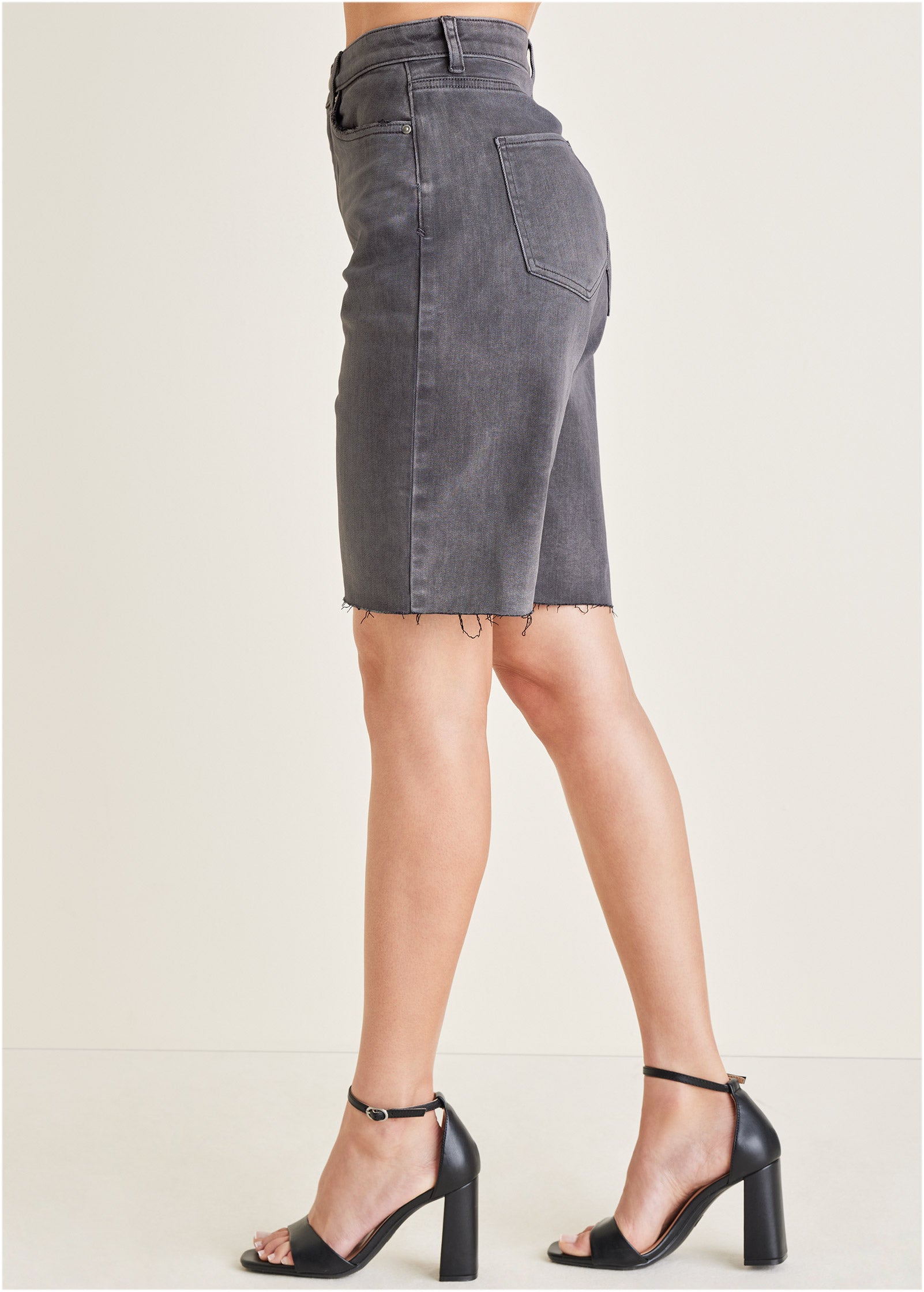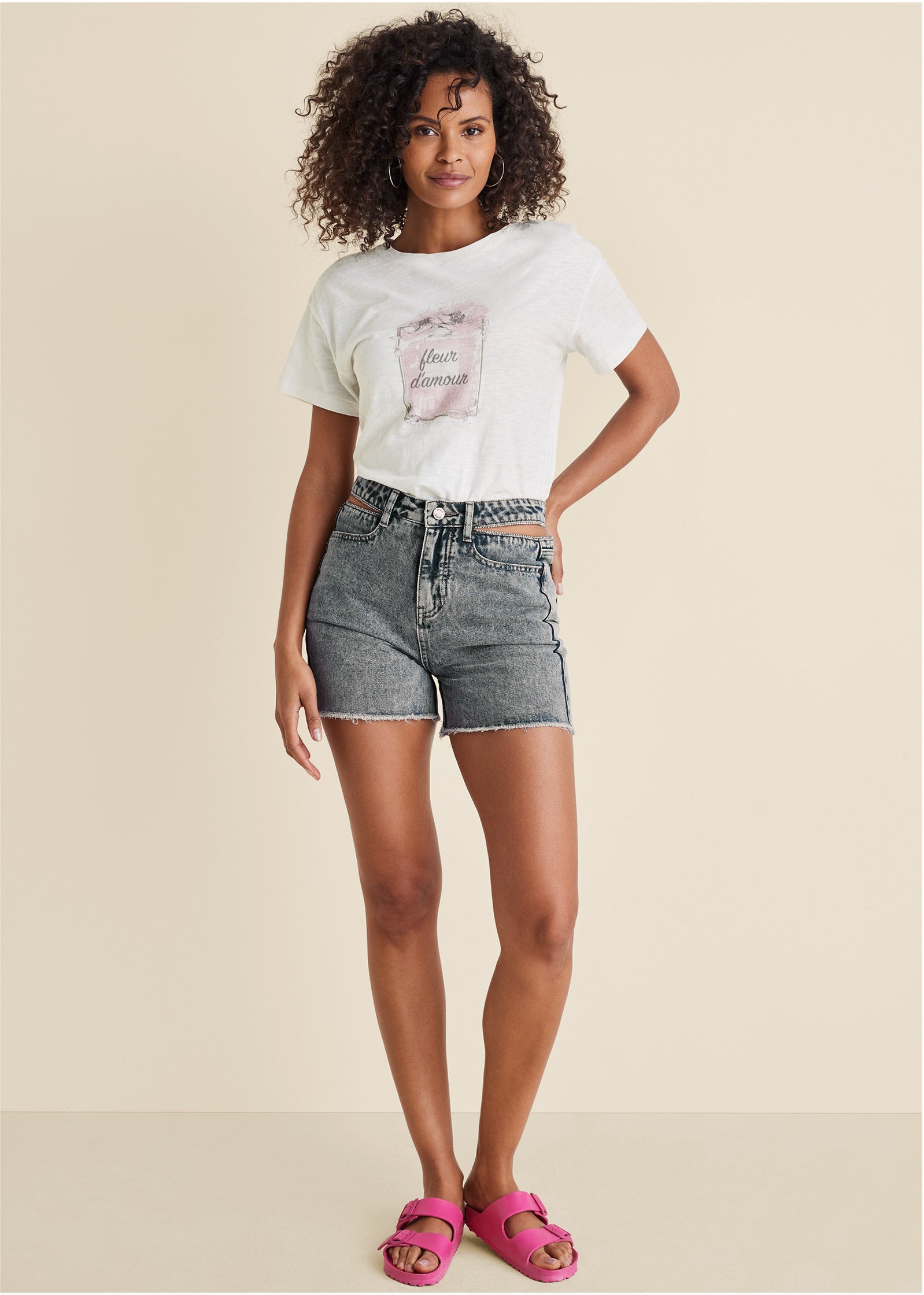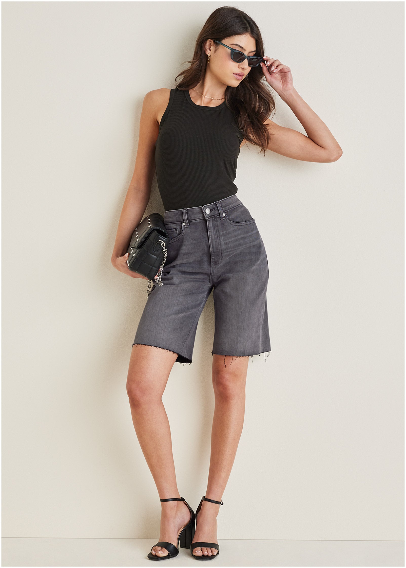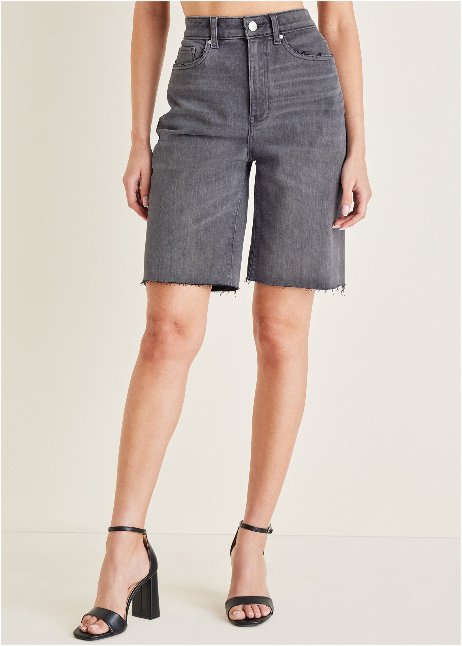 Find essential women's denim shorts that go with anything! Our jean shorts and cutoffs look great for warm or cool weather, just pair the right accessories! The essential cutoff jean short is a closet staple and we carry jean shorts in classic blue, along with white, red, black and more. Classic 90s fit denim shorts are all the rage right now, and we’ve taken our own sexy, sophisticated spin on them. Shop distressed and frayed cutoff jean shorts in several colors and lengths. For a more polished denim look, also find cuffed denim shorts, capris, long jean Bermuda shorts.