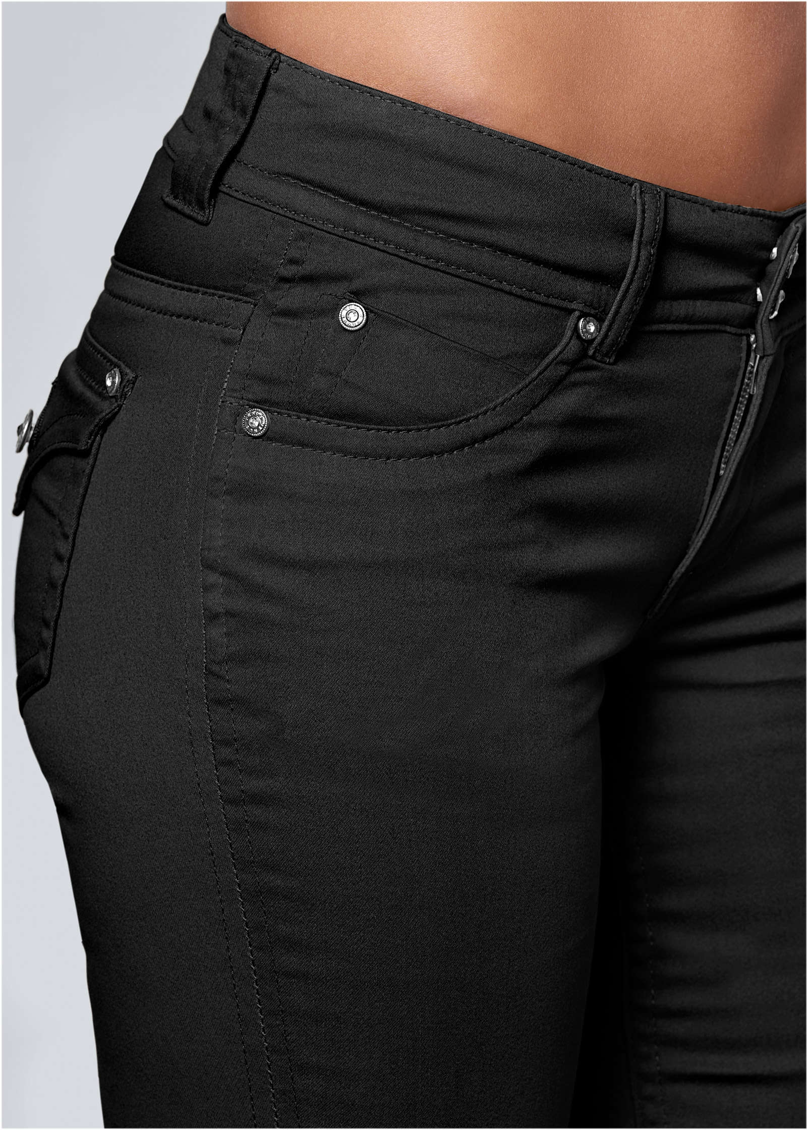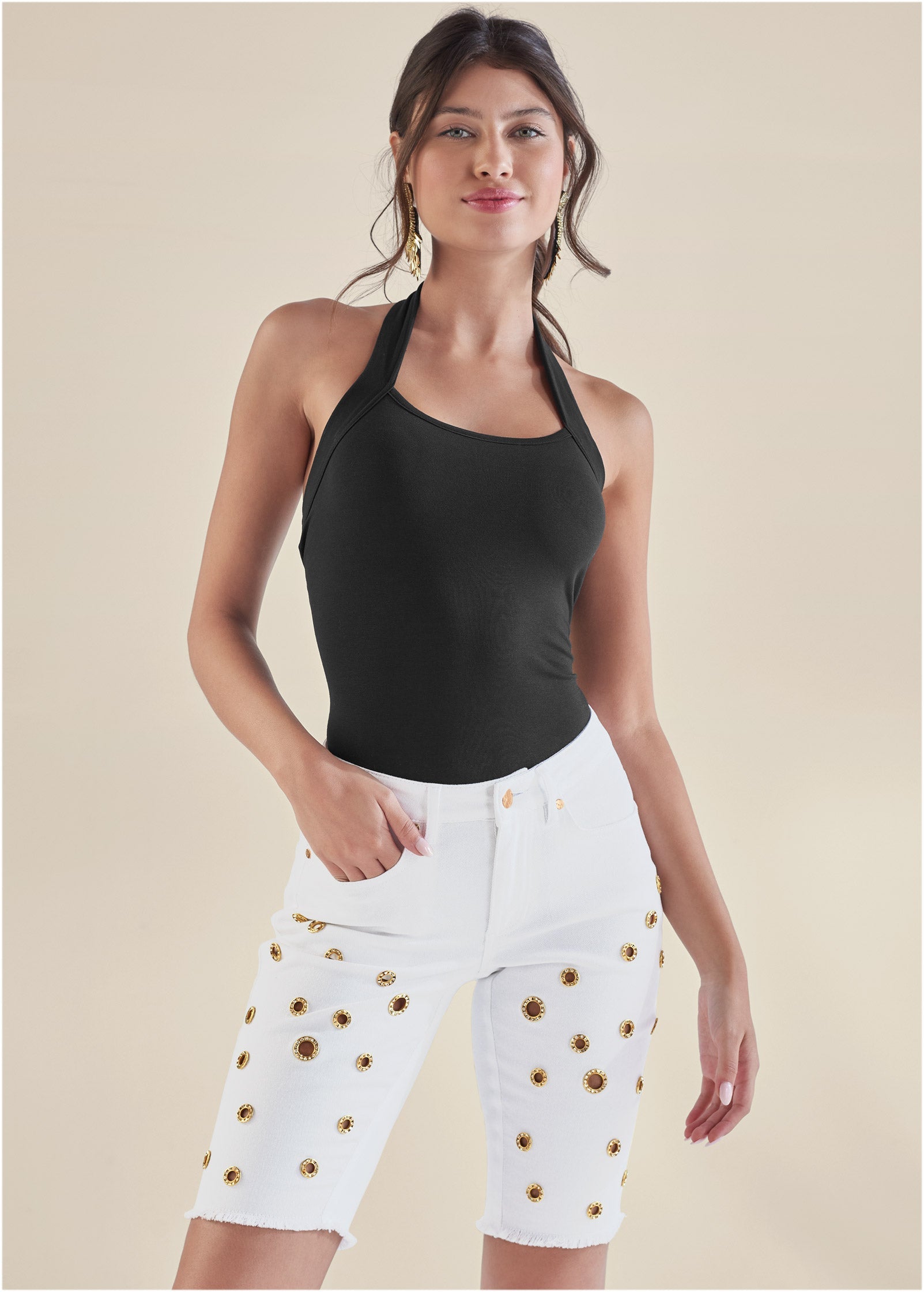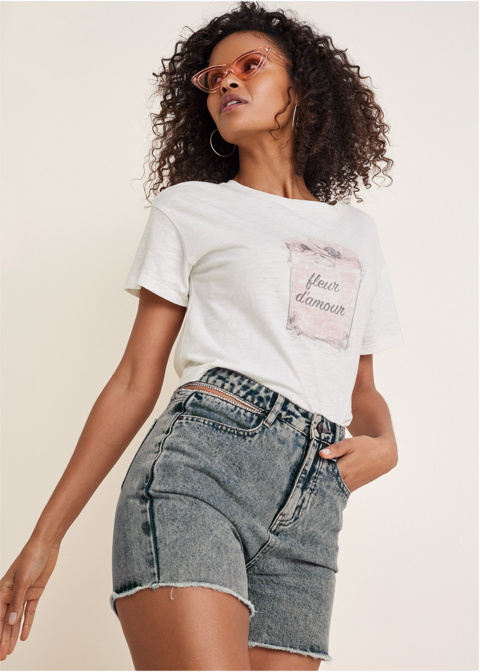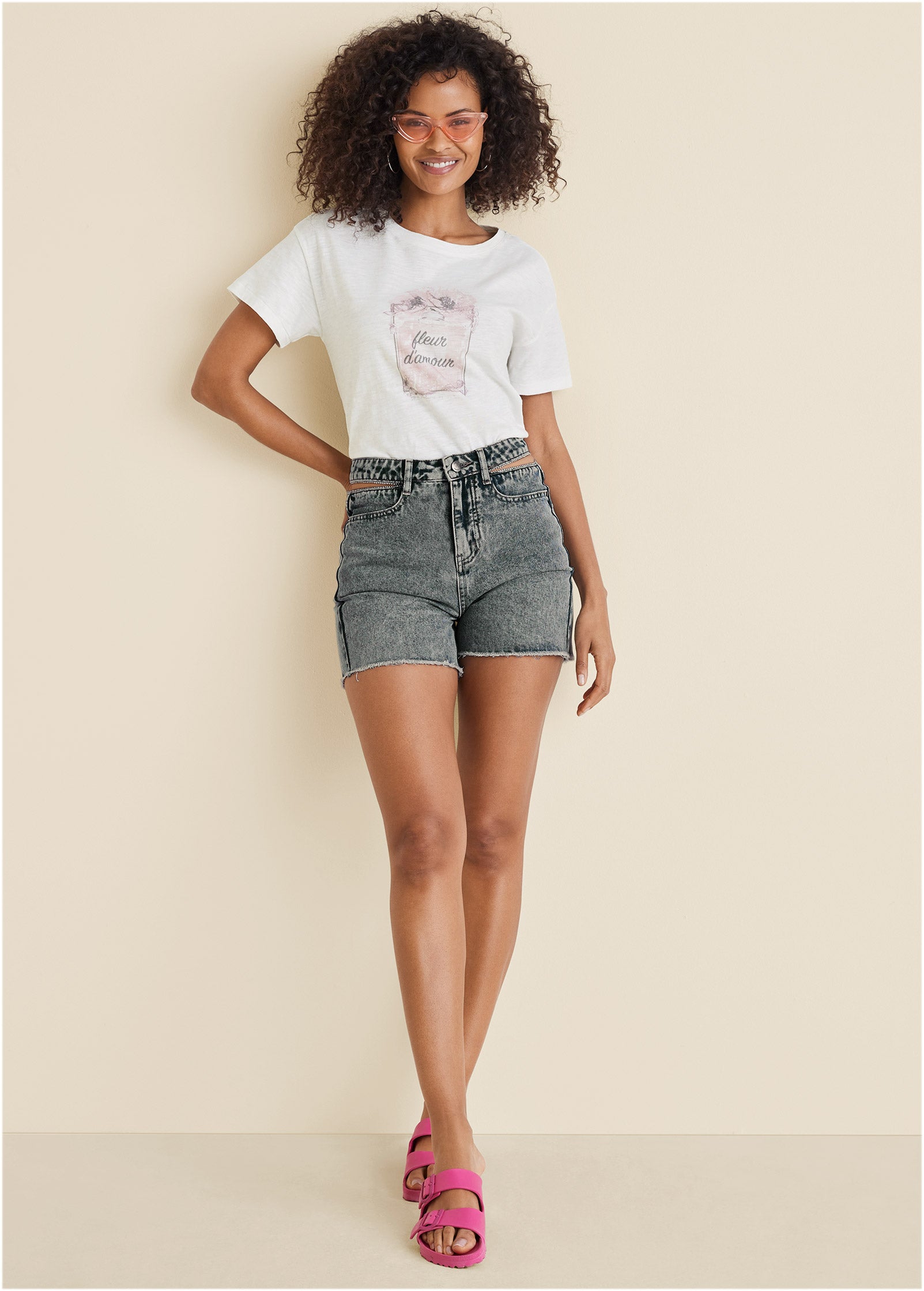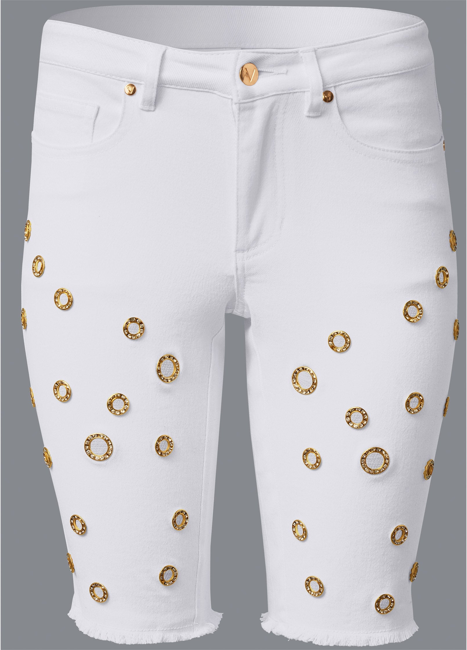 Find essential women's denim shorts that go with anything! Our jean shorts and cutoffs look great for warm or cool weather, just pair the right accessories! The essential cutoff jean short is a closet staple and we carry jean shorts in classic blue, along with white, red, black and more. Classic 90s fit denim shorts are all the rage right now, and we’ve taken our own sexy, sophisticated spin on them. Shop distressed and frayed cutoff jean shorts in several colors and lengths. For a more polished denim look, also find cuffed denim shorts, capris, long jean Bermuda shorts.