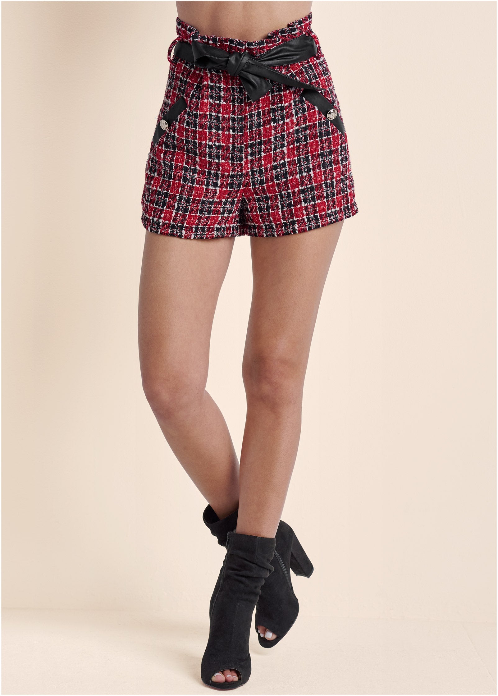 Update your leg-baring look with new dressy shorts from VENUS. Shop fashion-forward faux leather belted shorts, tweed shorts and pleated cuff shorts. For a look that goes from career to cocktails with ease, shop our short and blazer sets. Available in several colors, and donning beautiful gold buttons and buckle, these shorts sets are a dressy must-have.