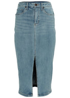 Curve-hugging fit, versatile wash and flirty front slit? Check, check annnd check. In other words, this denim midi skirt deserves prime real estate in your closet. Made in our Dream Denim, it has the perfect blend of comfort and structure, giving in all the right places, but never losing shape. Style it up or stick to the classics with a tried-and-true blue-jean-and-tee look.