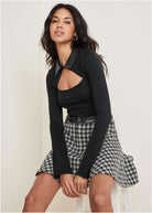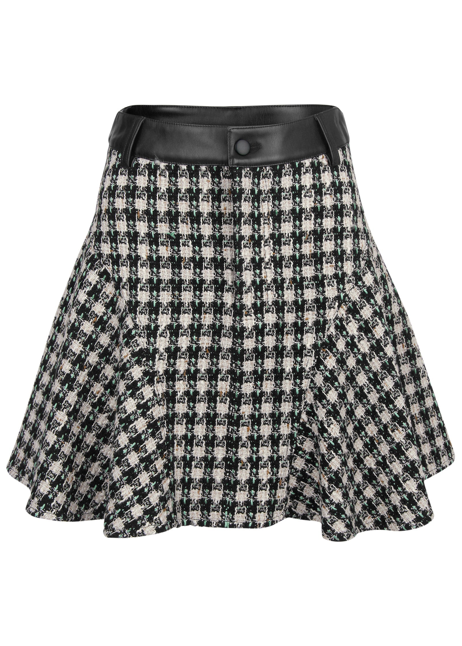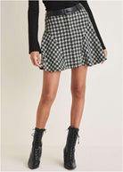 This tweed skirt is not just a want, but a need! It combines your two favorite cold-weather fabrics—tweed and faux leather—for a look that's ready to take on the cooler seasons. Whether you're pairing it with a chic sweater or a bodysuit, this skirt effortlessly amps up your style.