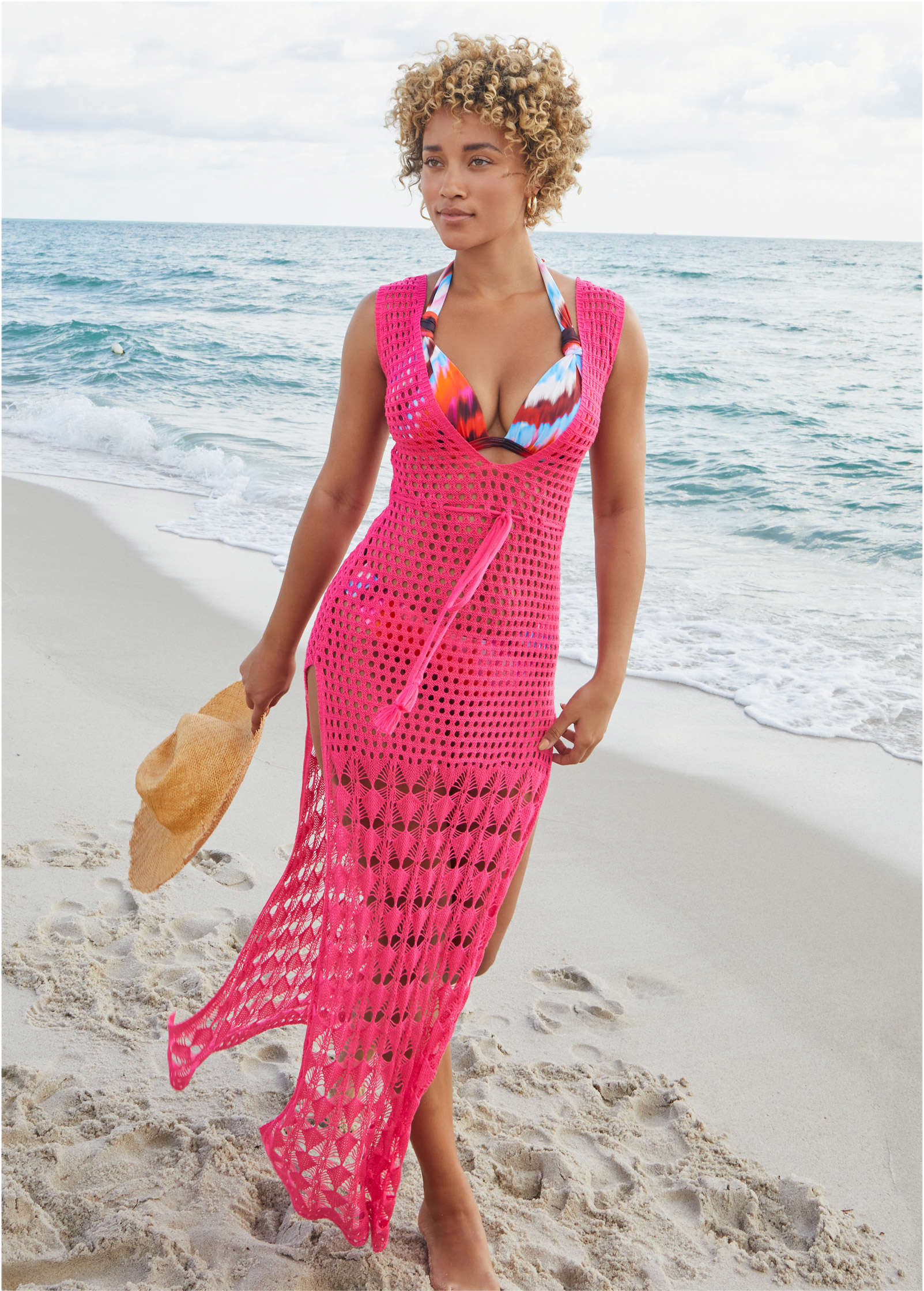 Crochet Maxi Cover-Up Dress - Fuchsia