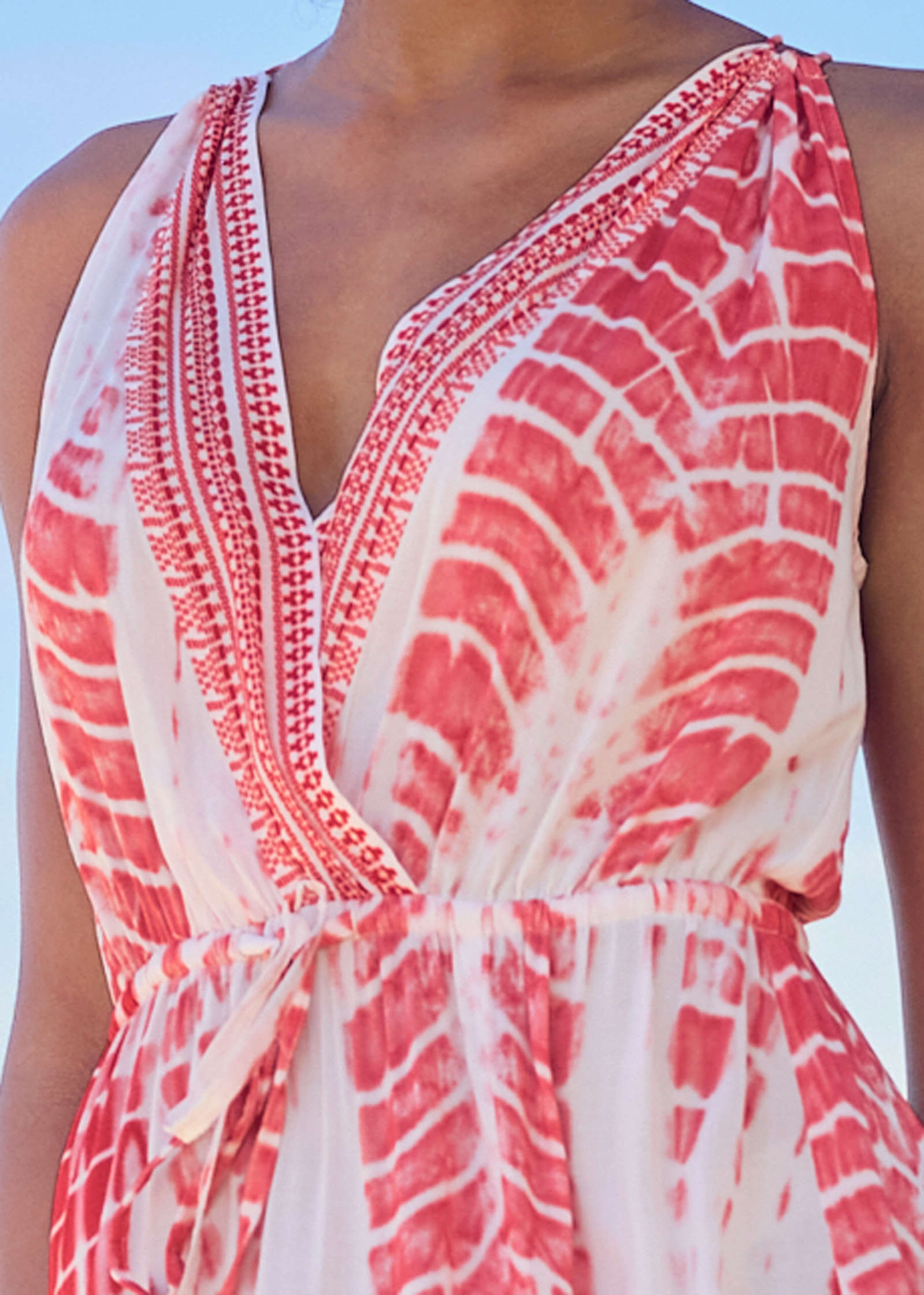 More than a cover-up! Maxi-mize your allure with the deep surplice V-neck and daringly high slit of this breezy style.