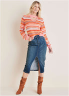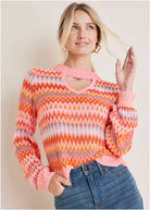 This colorful Fair Isle sweater is the antidote to gray winter days. Brightly-colored and ultra-soft, you'll feel cheerful the minute you slip it on. A keyhole detail sitting beneath the mock neckline adds just enough pizazz to keep things interesting. Rock this knit with a denim skirt and boots for a chic spin on cozy sweater dressing. * Sizes: XS (2), S (4-6), M (8-10), L (12-14), XL (16) * Pullover * Mock neck * Long sleeves * Acrylic. Imported