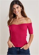 Off The Shoulder Sweater - Dark Pink