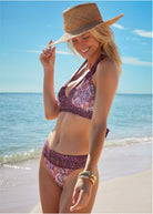 When it's time to get away, make sure this bikini bottom is packed. Twin prints are an eye-catching combo that feel just as exotic as your destination. With a mid-rise fit and moderate coverage, the bottom flatters for pool time, beach days and whatever else your trip has in store. * Runs small; Size up for a better fit * Sizes: XS (2), S (4-6), M (8-10), L (12-14), XL (16), 2X (18-20) * Mid rise * Moderate coverage * Poly/spandex tricot. Imported