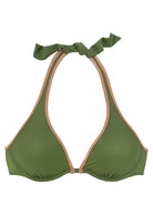 Give your bikini drawer a fresh trim with our underwire halter bikini top, featuring a metallic neckline and strap trim that adds a playful element to every beach and poolside look. With built-in underwire support and adjustable halter straps, this bikini top ensures a comfortable and secure fit, allowing you to confidently embrace your curves.