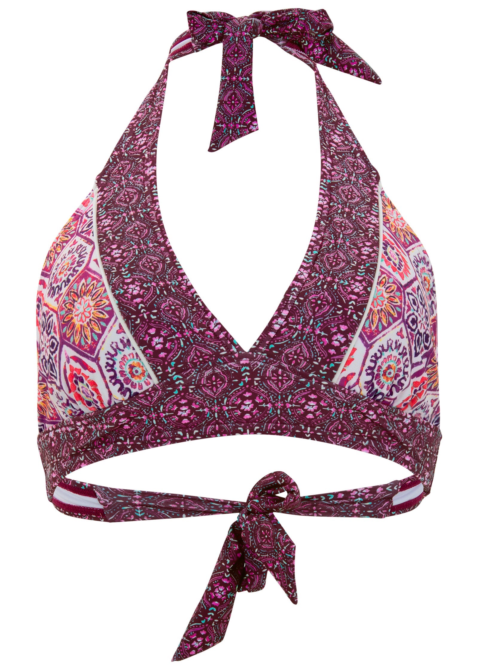 Feel (and look!) cool by the pool in a bikini top that reveals your confidence. With extra coverage from the underbust band and wide halter straps, you'll show off your curves without revealing too much. The extra shaping from the removable cups gives you the power to perfect your look!