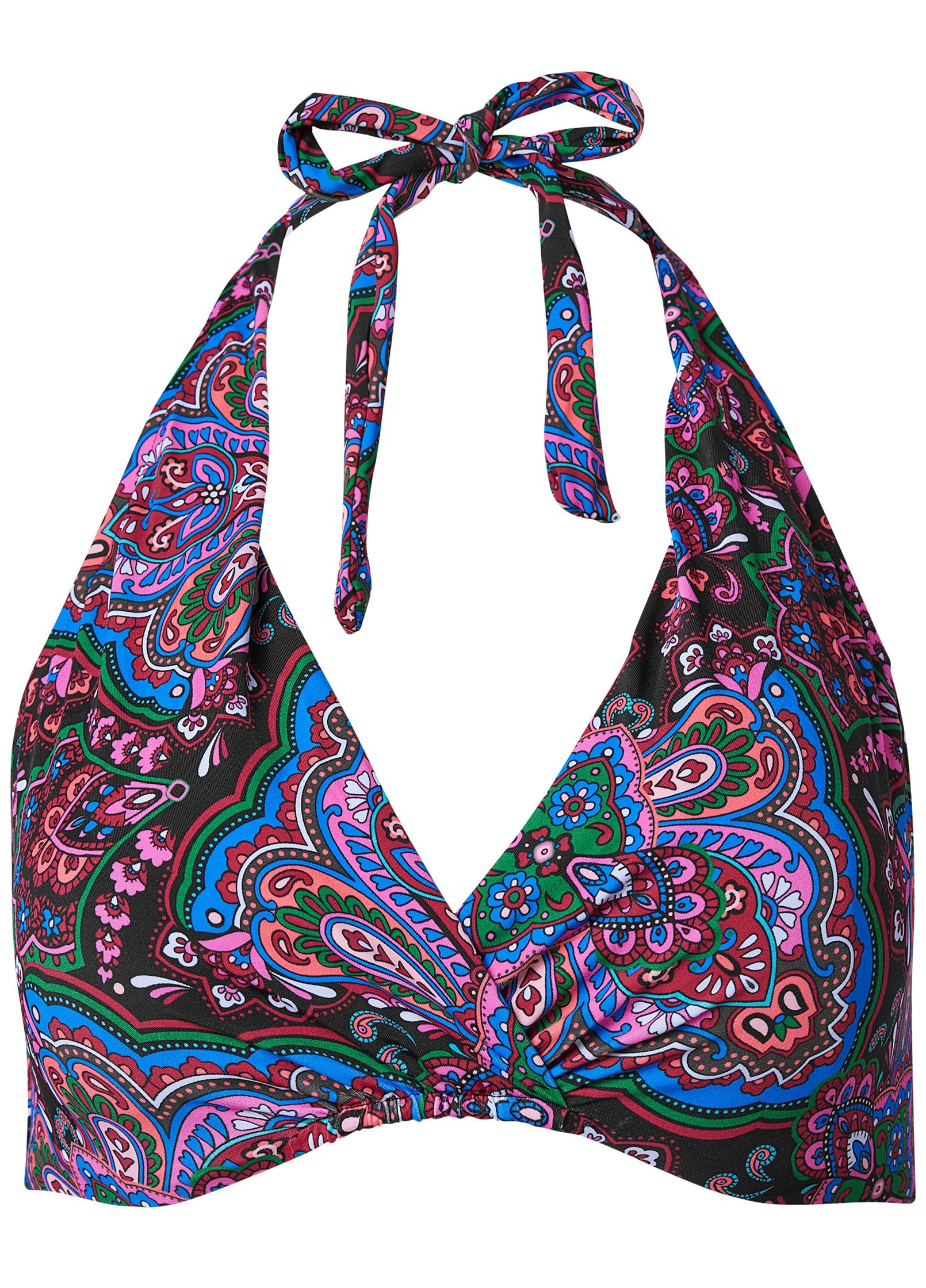 In a wrapped silhouette with gathers across the cups, this flattering halter bikini top offers a smoothed-out fit with extra lift from its underwire. The sash halter neck and slider back strap are both adjustable, assuring a made-for-you feel that comes with you to every destination.