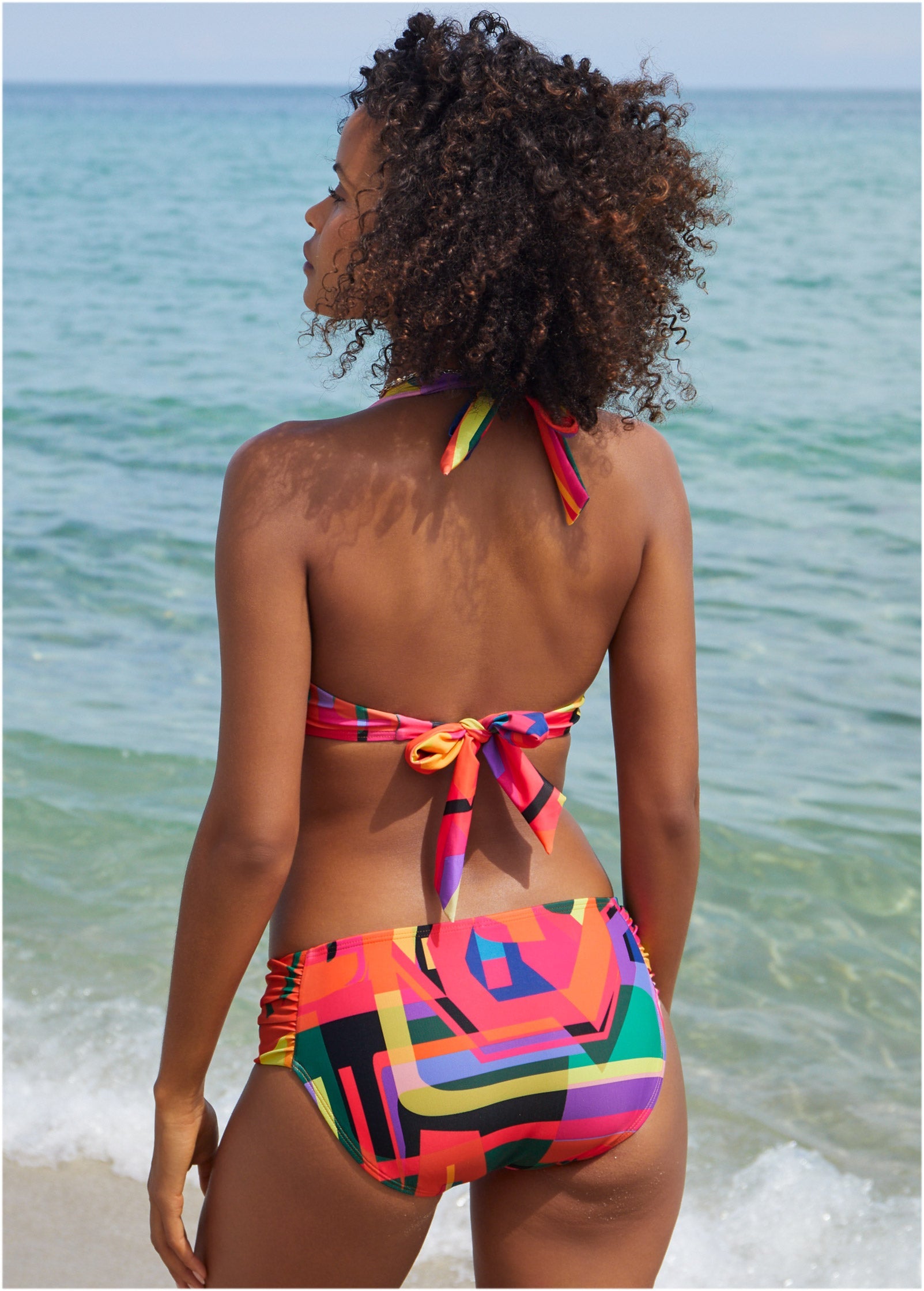 * Underbust band hugs you and helps support the bust * Ties behind the neck and back comfortably * For printed items; placement may vary * Removable shaping cups