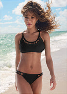 Take mixing and matching to the next level when you throw these scoop-front bottoms into the mix! Strappy trim along the hip finishes with ring accents for a subtle touch of glam that elevates your beach day style. That's sure to put you in a sunny state of mind!