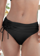 Hey beach babe, these bottoms are for you! With an adjustable tie at the hip that creates gathers in the fabric overlay, you'll enjoy the curvy silhouette and a made-for-you fit that sits a little higher on the hips. So get set to soak up the sun in your new favorite swim pick!