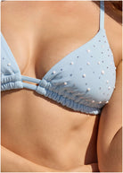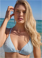 Add some sparkle to your swimwear collection with the Embellished Triangle Top. With over-the-shoulder straps for a comfortable fit and removable padding for customizable support, this top is designed to shine. The embellishments give a touch of glam, perfect for making a statement by the pool or on the beach. Pair it with the Embellished Malibu Bottoms or Embellished Fiji Bottoms for a coordinated and stylish swim look.