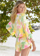 Soft terry combines with a relaxed and flirty fit to create the ultimate cozy cover-up! Adjustable ties on the sleeves let you pull them to 3/4 length or keep them long so you can choose the amount of coverage you prefer. The wide neckline and loose bodice keeps it slouchy for relaxed vacay days.