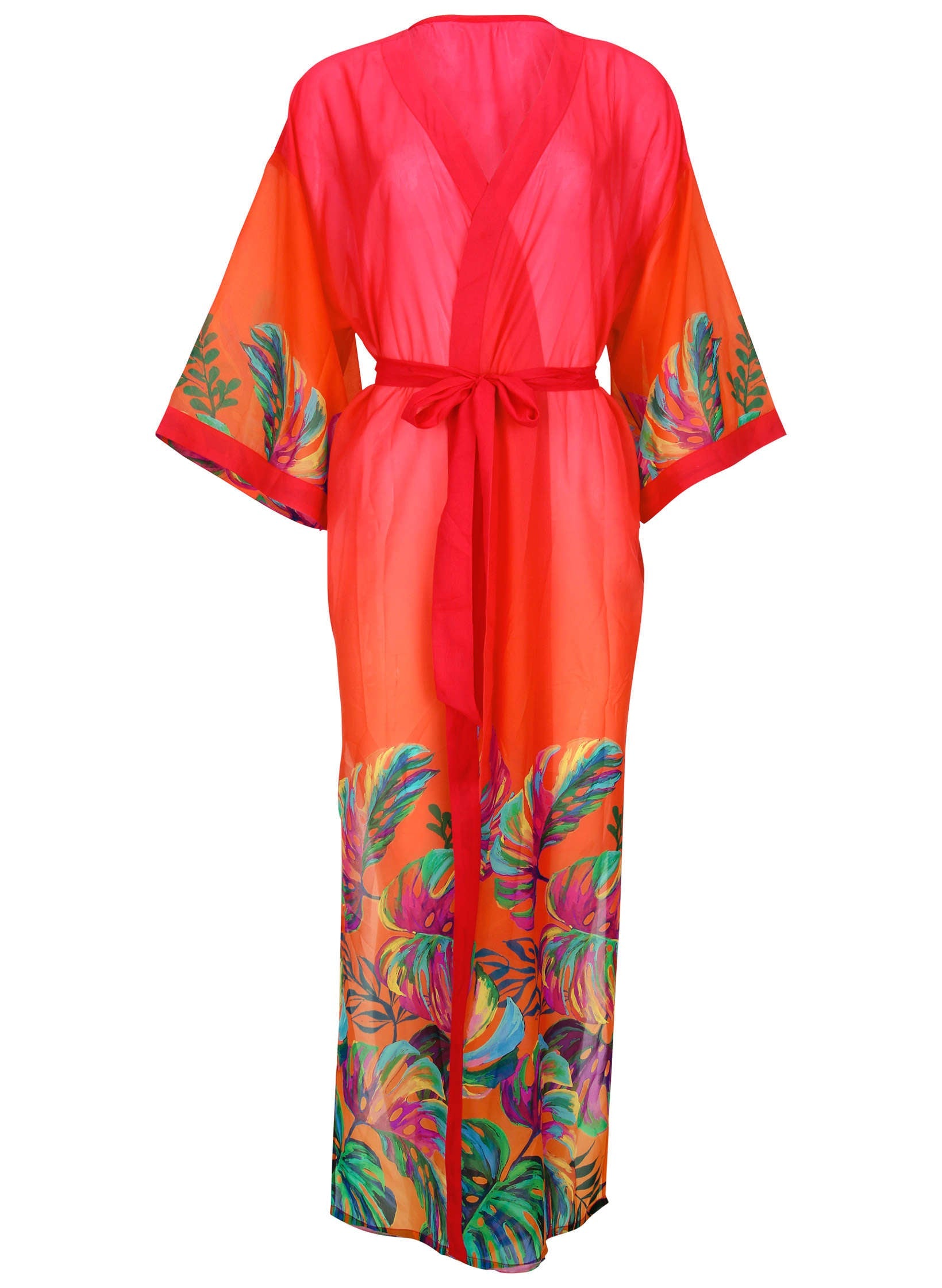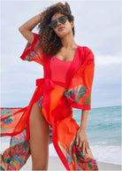 Belted Kimono Cover-Up - Tropical Sunset Border