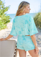 Short Sleeve Cover-Up - Aqua Reef & Pearl White