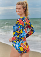 Enjoy the sun in all-day coverage when you pull on this long sleeve rash guard. The slightly relaxed fit allows for a day full of activities while still providing maximum sun protection. With a matching suit underneath for added support, this rash guard was made for days in and on the water!