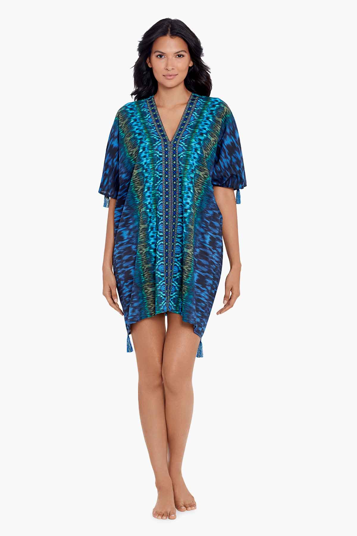 Beach cover ups range from the barely there to, well, all covered up, and the right choice depends on your plans. Sheer crochet styles are made for showing off what’s underneath, perfect for pool days or walking the beach (plus, they’re super trendy). A swimsuit cover up dress is the ultimate transition piece, taking you from the beach bar to the boardwalk easily. A flowing kaftan gives quiet luxury, whether you’re heading to the neighborhood pool or waltzing through a five-star resort. The lightweight feel and breezy length looks effortlessly glam, no matter where you wear it.