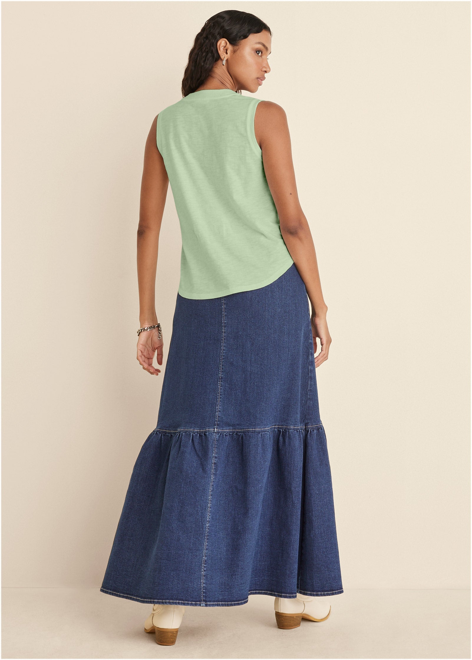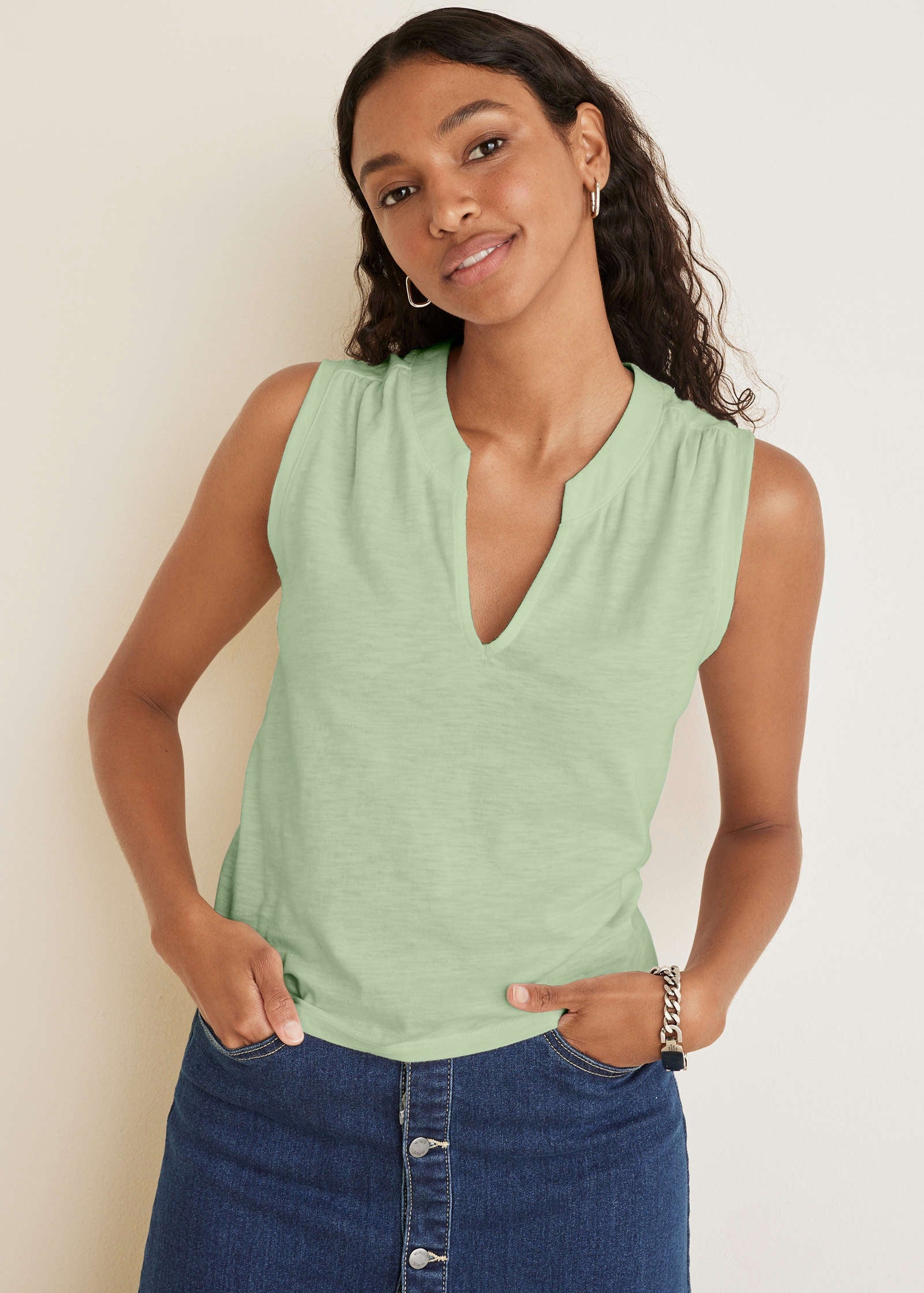 This V-neck tank will give you that weekend feeling, seven days a week. Made in our Weekend Slub cotton, it's live-in soft and lightweight with just the right amount of stretch for a relaxed feel 24/7. We also gave it elevated details like subtle ruching at the shoulders and a high-low hem that's longer in back. Basics? never heard of them.