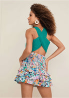 * BOLD BACK DETAIL: A cross-back overlay adds a flirty, fashion-forward twist.
