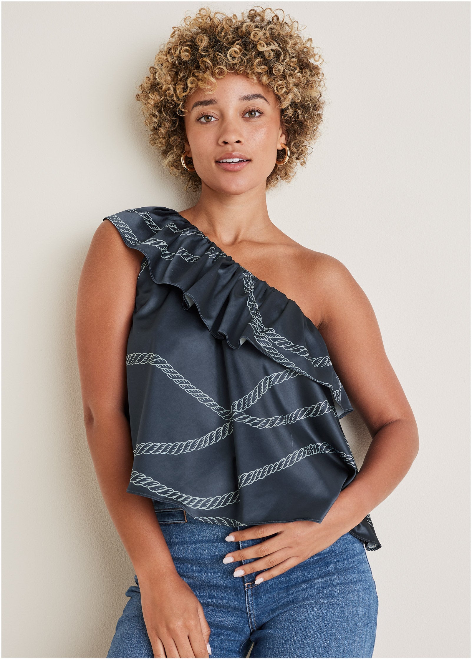 Sleeveless tops can go super-sophisticated when it's time for an evening party or event. Maybe it's a bold one-shoulder ruffled top that hugs your curves and delivers the polish to impress. Find that perfect party top within our collection. Keep it classic in a black halter neck top with long strands of metallic fringe that let you shimmer and shake your way through the night.