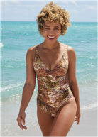 A tankini with a twist! The knot detail at the base of the plunging V-front assures you bring a little more heat to the beach. Ruching across the bodice smooths and flatters for curve-hugging appeal that gets a little lift with the help of adjustable shoulder straps.