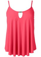 A center bust keyhole is fixed with a chic silver spiral, taking this classic, convertible scoop neck to new heights!