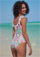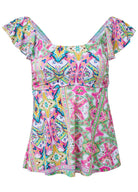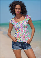 Flutter Sleeve Tankini Top - Beach Art