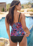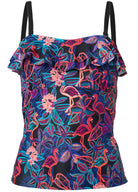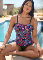 Mix and match your poolside look with all the coverage of a one-piece when you choose a tankini. The slight scoop neck of this tankini top boasts flirty layered ruffles, setting it apart from the rest with its undoubtedly feminine styling. Adjustable straps detach for a perfect fit with an even complexion.