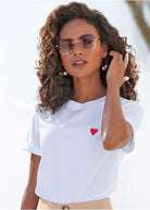 Skip wearing your heart on your sleeve. This comfy graphic tee puts your heart right where it belongs, with a subtle graphic that turns any casual look from standard to swoon-worthy. Done in breezy cotton, this short-sleeve tee is easy to dress up or down so you can bring romantic vibes to any adventure. Tuck it into a form-fitting skirt for an casual-yet-alluring Valentine's Day look or wear it with jeans for casual date night. * Sizes: XS (2), S (4-6), M (8-10), L (12-14), XL (16) * Crew neckline * Short sleeves * By Lascana for VENUS * Cotton. Imported