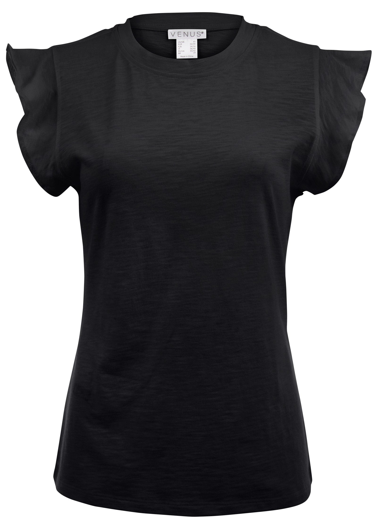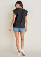Ruffle Sleeve Tee - Jet Black